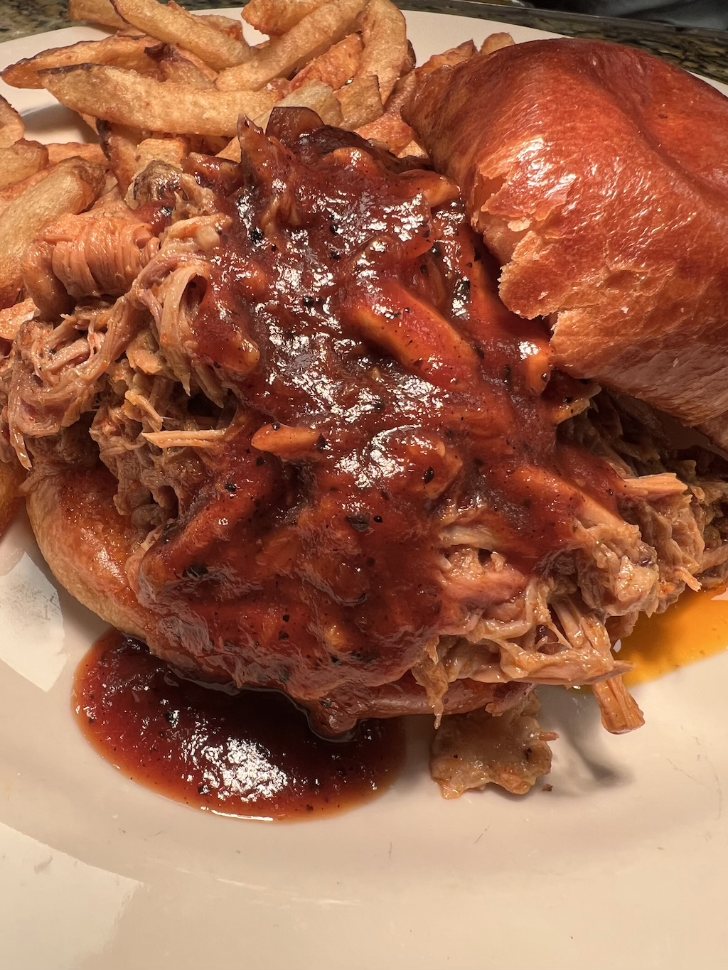 If you, like many locals and out-of-town visitors alike, love Southern barbecue, you will almost certainly be really pleased to hear that the always excellent pulled pork at the Roadhouse just got notably better! I had a bite about half an hour ago as prep for writing this piece and its richness, complex flavor, and super long finish are still lingering in the loveliest of ways. I don’t generally consume a whole lot of meat, but the flavor of the new Red Wattle pork is so good I’m eager to eat more!
